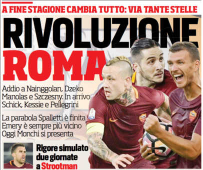 CESSIONI E GIOVANI – Naturalmente la squadra sarà rinforzata e la competitività della rosa della prossima stagione dipenderà molto dal piazzamento finale in campionato. La conquista del secondo posto è di fondamentale importanza e la mancata partecipazione alla Champions comporterebbe inevitabilmente qualche cessione in più. La Roma cambierà volto e si punterà sui giovani, a cominciare dal centravanti. Si punta su Schick, l’attaccante rivelazione della Samp che resta in pole position. Ma bisognerà battere un’agguerrita concorrenza. Si cercherà di ridurre il monte ingaggi del venti per cento. Sempre nell’ottica dei giovani la Roma insiste per Kessie e domani è previsto a Roma un nuovo incontro con l’Atalanta e il procuratore dell’ivoriano. I dirigenti giallorossi sono convinti di poter battere in questo caso la concorrenza del Milan. Che vuole anche Pellegrini, ma la Roma è intenzionata a esercitare il diritto di riacquisto nei confronti del Sassuolo. In entrambi i casi ci sarà comunque da lavorare.