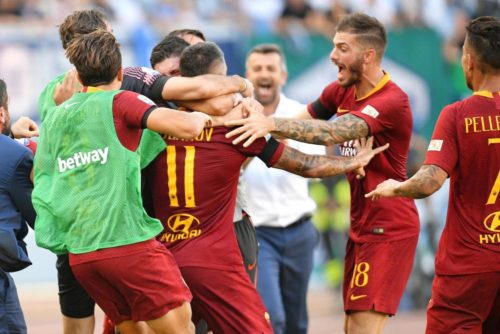 Come l’anno scorso Eusebio Di Francesco scaccia i corvi dal cielo di Trigoria. La Roma ha battuto la Lazio e la vittoria vale doppio, perché una settimana fa Pallotta era disgustato e il derby può salvare le stagioni. Secondo successo di fila, i sei punti in tre giorni hanno rimesso a posto la classifica giallorossa. L’impressione è che a Roma molti sottovalutino le capacità di Di Francesco. Gli hanno smontato il giocattolo con le cessioni di Alisson, Strootman e Nainggolan e hanno preteso che subito ne plasmasse un altro di pari divertimento. Il cerino ora passa nelle mani di Simone Inzaghi. La classifica laziale resta migliore di quella romanista, un punto in più, però la sconfitta cambia la prospettiva, capovolge gli umori. Come riporta La Gazzetta dello Sport, la Roma ha cominciato male la partita. È stata timida e timorosa, sottomessa alla Lazio, che però ha avuto la grande colpa di non capitalizzare la superiorità territoriale. La Roma ha svoltato per caso, grazie all’infortunio di Pastore. L’ex Psg si è fatto male al polpaccio sinistro ed è stato sostituito da Lorenzo Pellegrini. L’azzurro non è entrato in partita: di più, l’ha fatta sua. Quasi allo scadere, con un colpo di tacco e al culmine di diversi rimpalli ha messo dentro l’1-0, nella stessa rete in cui Pastore di tacco aveva segnato contro Atalanta e Frosinone. Nel secondo tempo un errore scellerato di Fazio regala il pareggio a Ciro Immobile. Su quel gol la Roma si è trovata davanti a un bivio e ha imboccato la giusta direzione: non si è consegnata alla Lazio, ma con carattere è andata a riprendersi il proprio futuro grazie ad una punizione dell’ex laziale Kolarov ed al colpo di testa di Fazio. Gol storico quello del serbo che ha eguagliato Arne Selmosson, attaccante svedese degli Anni Cinquanta e Sessanta, scomparso nel 2002 e fino a ieri unico calciatore ad aver segnato nel derby romano con le due maglie.