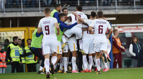 Alisson 6; Florenzi 6, Jesus 6,5, Moreno 7, Kolarov 7,5; Pellegrini 5,5, De Rossi 6, Strootman 5,5; El Shaarawy 6, Dzeko 6, Nainggolan 6,5. Subentrati: Under 6,5, Perotti SV, Peres SV. Allenatore: Di Francesco 7.
