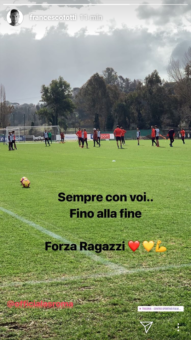 NewsSocial Roma Totti alla squadra: “Sempre con voi… Fino alla fine. Forza ragazzi” – FOTO Gennaio 28, 2019 Francesco Totti, dirigente giallorosso, ha pubblicato una foto sulla propria storia di Instagram scattata durante l’allenamento della Roma. Queste le sue parole: “Sempre con voi… Fino alla fine. Forza ragazzi”. Scritto da Redazione Condividi FacebookTwitterWhatsAppTelegram PER APPROFONDIRE LEGGI ANCHE I più letti