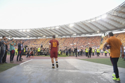 La Repubblica (L.Monaco) – Via Vetulonia sembra più silenziosa del solito. C’è poca voglia di scherzare al bar Jolly, tra i palazzi che hanno visto Francesco Totti crescere e farsi uomo. E poi capitano. Simbolo di una città che stenta ancora a realizzare l’addio al calcio giocato con la maglia giallorossa. «Oggi è il giorno del lutto», sussurrano i 15 tifosi che hanno presidiato per oltre 10 ore i cancelli sbarrati di casa Totti, all’Eur. Speravano di vederlo, di stringergli la mano. Di dirgli «capitano, ce l’hai chiesto ieri (domenica, ndr) da centrocampo, siamo qui per te. Non ti lasceremo mai», come scandiva la Sud durante il discorso di addio. Un grido d’amore, per lenire la ferita di quell’immagine: il trascinatore in lacrime seduto sui cartelloni pubblicitari sotto la tribuna Tevere. «Francesco, non aver paura», voleva confortarlo Roberta Carannante, una 25enne studentessa in Scienze motorie arrivata appositamente da Napoli per assistere alla partita d’addio, allo stadio. «Oggi non prendo il treno di ritorno finché non lo vedo», esclama nel pomeriggio. Non lo vedrà. Può solo immaginare cosa frulli nella mente di Totti «nel primo giorno della sua seconda vita». Lui resta blindato in casa tutto il giorno. «Vuole stare in pace», spiegherà uno dei suoi collaboratori ai tifosi. Il drappello di supporter non molla. «Come starà?», è la domanda che si moltiplica in città, sulle reti social. La risposta, lapidaria, sta nelle parole pronunciate da Marcella, la nonna di Ilary Blasi: «È a pezzi», ammette alle 9 del mattino. La donna è la prima a uscire dal comprensorio alle spalle del centro commerciale Euroma 2.
