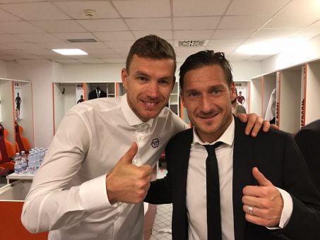 E’ grande festa per Francesco Totti che con il suo rigore ha spedito la Roma in semifinale di Coppa Italia contro la Lazio. Il Capitano, inoltre, ha segnato il suo gol numero 100 sotto la guida Spalletti e a fine match lascia un pensiero anche sul profilo Twitter dove si ritrae con Dzeko. Queste le sue parole: “Gara difficile e con una squadra non da Serie B. Vittoria con spirito da grande squadra! Andiamo in semifinale! Daje Roma ️⚽️“.