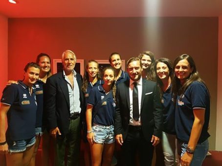 Serata di grandi incontri quella di Totti ieri sera allo stadio Olimpico. In occasione di Roma-Inter, nella sua prima uscita ufficiale da dirigente in casa, l’ormai ex capitano dei giallorossi ha incontrato non solo Kevin Spacey, con il quale ha posato assieme a Javier Zanetti, ma anche una delegazione della Nazionale italiana di volley. La selezione azzurra, invitata dal Presidente del Coni Giovanni Malagò, ha seguito il match di Serie A dalla tribuna Montemario, dal momento che in questi giorni si trova a Roma per preparare i prossimi europei.