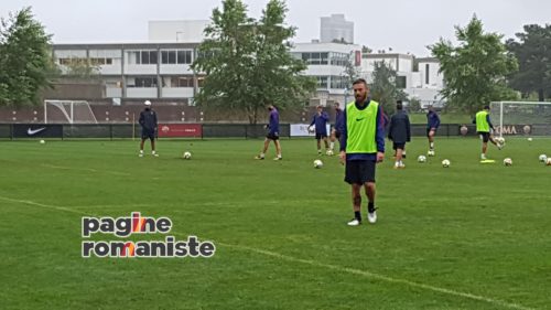 Durante il match anche qualche cambio: Moreno e De Rossi sono passati con i gialli al posto di Jesus e Gonalons. Coi blu sono entrati Keba e Sadiq al posto di Iturbe ed Antonucci. Dopo la partitella, ed una pausa per bere, la squadra ha lavorato sui calci piazzati. L’allenamento è così terminato con alcuni giocatori che si sono fermati a tirare i calci di rigore mentre altri, come Nainggolan, Tumminello, Strootman e Under si sono sfidati a calcio tennis.