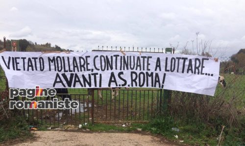 Nonostante le ultime battute di arresto non manca l’appoggio dei tifosi della Roma verso i propri calciatori. Quest’oggi è apparso, fuori dal centro sportivo di Trigoria, uno striscione di incoraggiamento che recita: