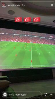 Questa sera la Turchia ha vinto 1-0 nel match contro l’Andorra valido per il girone H di qualificazione ad EURO 2020 grazie al gol nel finale di Tufan. Orfana di Cengiz Under, la squadra di Gunes è riuscita lo stesso ad agganciare in vetta l’Islanda e la Francia. Mert Cetin, difensore della Roma, è rimasto in panchina per tutta la gara. Under ha fatto il tifo da casa postando una storia sul proprio profilo Instagram.