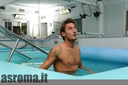 Francesco Totti sta lavorando duramente per essere disponibile domenica sera nel derby contro la Lazio. Sulla pagina Twitter dell’As Roma è stata infatti postata una foto del capitano romanista mentre lavora in piscina. Ancora in dubbio la sua presenza per il 16 ottobre, nei prossimi giorni il giocatore si sottoporrà ad ulteriori accertamenti medici.