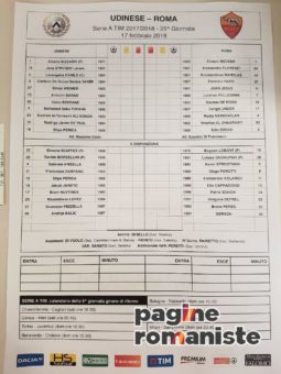 Ammoniti: 48′ Stryger (Udinese), 62′ Perica (Udinese), 76′ Dzeko (Roma), 87′ Jankto (Udinese).