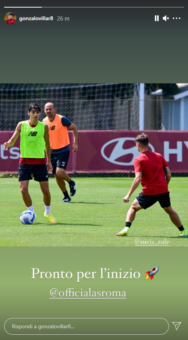 Gonzalo Villar è pronto ed è carico per la Fiorentina. Il centrocampista oggi si è allenato interamente col gruppo superando i problemi avuti al ginocchio durante il ritiro in Portogallo. Ottime notizie, quindi, per José Mourinho che dovrà fare a meno soltanto di Smalling e Spinazzola. Questa la stories Instagram di Villar postata nel pomeriggio: “Pronto per l’inizio“.