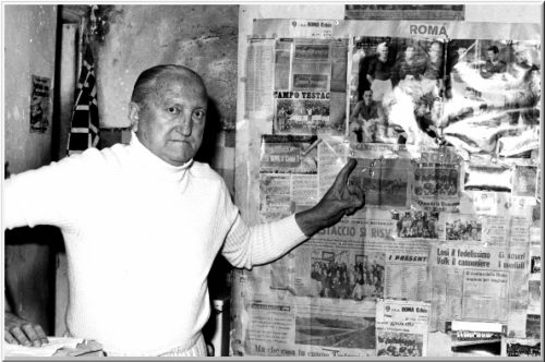 Pagine Romaniste (F.Belli) – Il mito di Bolteni nasce alla Fiorentina, dove gioca per una stagione intera disputando anche la seconda gara non ufficiale del club. Nel 1928 poi si trasferisce alla Roma, divenendone nel giro di pochi anni un’assoluta leggenda. Mai sentito parlare? Normale, perché quello non è il suo vero nome. E’ uno pseudonimo che ha dovuto utilizzare durante il servizio militare. Il suo vero nome è Rodolfo Volk, che in sloveno significa lupo, forse un segno del destino. In continua evoluzione, visto che poi diventerà “Folchi” per la volontà fascista di italianizzare i nomi. È per questa confusione onomastica che i tifosi della Roma saranno costretti ad affibbiargli più soprannomi: il più famoso è “Sciabbolone”, per i tiri potenti di cui era capace e contrapposto al dispregiativo “Sciaboletta” assegnato a Re Vittorio Emanuele III. E poi “Sigghefrido”, come il leggendario eroe della mitologia nordica. E’ anche l’uomo delle prime volte: suo il primo gol in Serie A della Roma, suo il primo gol a Campo Testaccio, suo il primo gol al derby. “Volke” era un attaccante formidabile, veloce e dotato di un tiro potentissimo, e come diceva lui stesso: “Io non penso, tiro”. Caratteristiche che, messe insieme a un compagno di reparto straordinario come Fulvio Bernardini, hanno creato terrore e scompiglio nelle difese avversarie. Dirà di lui lo stesso “Fuffo”: “Una volta l’ho visto sollevare dal fango un pallone sprofondato per due terzi nella melma, reso pesante dall’acqua che lo aveva impregnato, e farlo volare fino all’incrocio da una distanza di trenta metri. E’ stato il gesto tecnico più straordinario cui abbia mai assistito”.