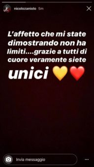 Il ragazzo ha poi postato una stories su Instagram: “L’affetto che mi state dimostrando non ha limiti… Grazie a tutti di cuore veramente siete unici“.