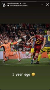 Su una storia sul proprio profilo Instagram, Nicolò Zaniolo ha voluto ricordare la finale Conference League a Tirana. Ad un anno esatto di distanza, l’ex 22 giallorosso ha condiviso una foto del suo gol che ha deciso la sfida con il Feyenoord in terra albanese, accompagnata dalla scritta “Un anno fa”.