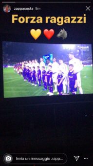 NewsSocial Roma Zappacosta segue i compagni dalla TV: “Forza ragazzi” – FOTO Dicembre 20, 2019 Davide Zappacosta, difensore della Roma, esprime vicinanza ai compagni occupati a Firenze contro gli uomini di Montella. Lo fa con una storia su Instagram. Ecco le sue parole: “Forza ragazzi”. Scritto da Redazione Condividi FacebookTwitterWhatsAppTelegram PER APPROFONDIRE LEGGI ANCHE I più letti