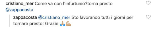 Davide Zappacosta, terzino della Roma in prestito dal Chelsea, ha risposto su Instagram a un tifoso che gli ha chiesto delle sue condizioni, dato il grave infortunio al ginocchio. Queste le sue parole: